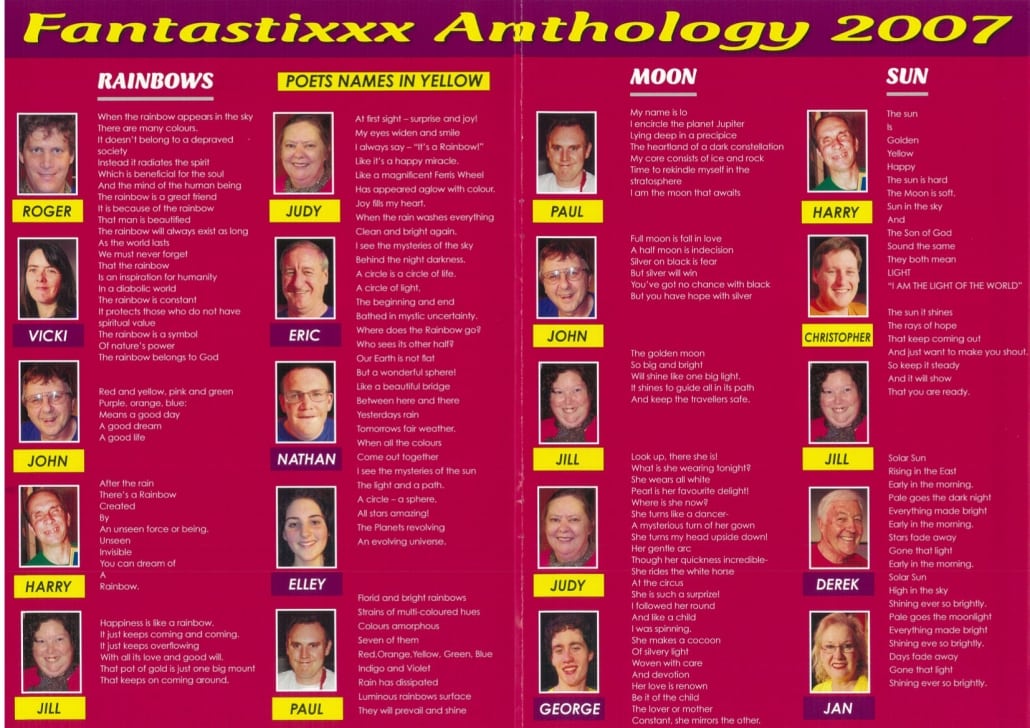 - Readings of verse and prose presented by individual members of THE FANTASTIXXX and/or group presentation