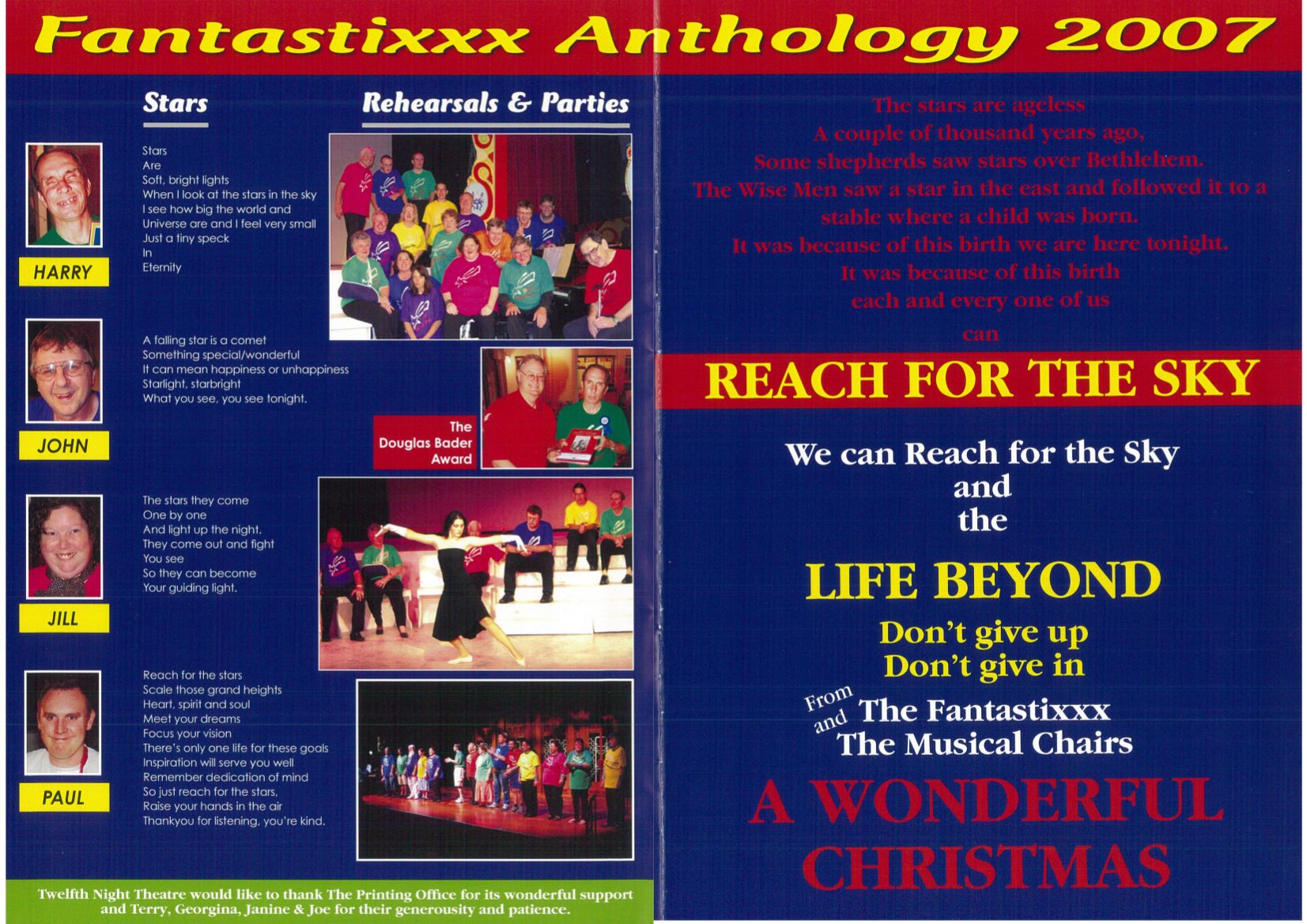 Bader was an inspiration and his courage remained a key motif for members of the group. Their first public performance at Twelfth Night Theatre, with the extraordinarily talented group, The Musical Chairs, was launched and titled Reach for the Sky.