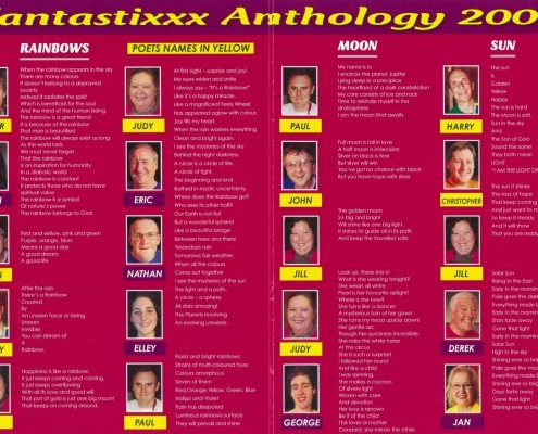 - Readings of verse and prose presented by individual members of THE FANTASTIXXX and/or group presentation