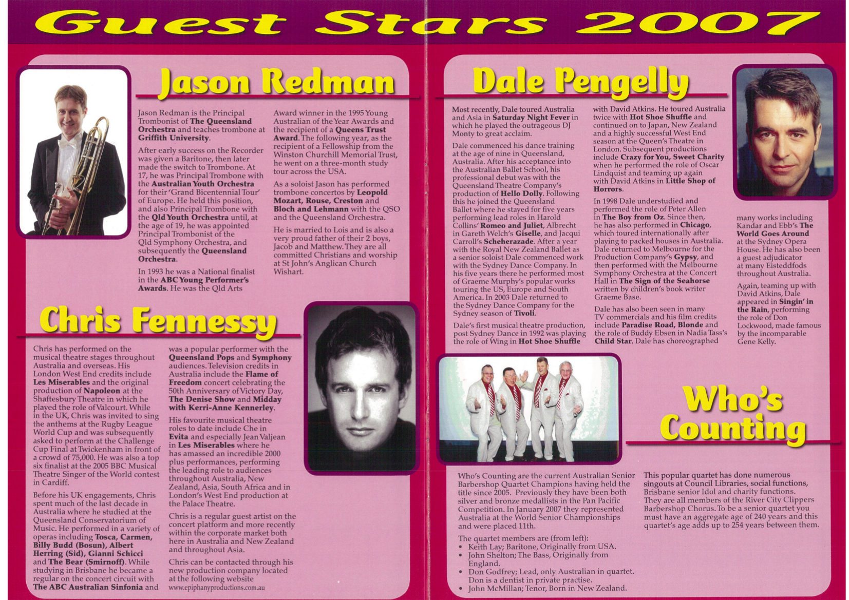 The Australian theme of traditional ballads and national songs has remained ever popular in the repertoire of THE FANTASTIXXX as they travelled Australia.