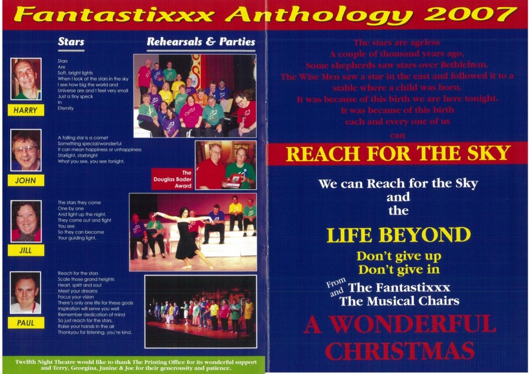 Bader was an inspiration and his courage remained a key motif for members of the group. Their first public performance at Twelfth Night Theatre, with the extraordinarily talented group, The Musical Chairs, was launched and titled Reach for the Sky.