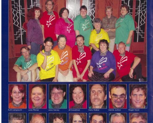 This group has never comprised of less than 50 members. All travelling costs (aeroplane, bus, cars etc.), accommodation and food, the distinctive RM Williams hats and bands, rainbow scarves, multi-coloured T-Shirts have been provided by Twelfth Night Theatre.